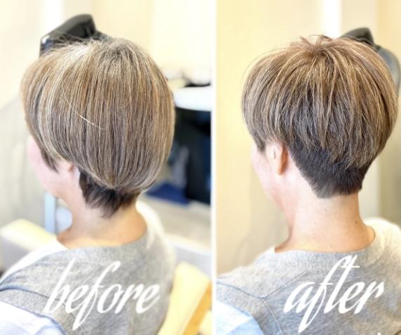 髪の毛を明るくも暗くもお染めできます。白髪染めをご希望の方はグレイカラーをご選択ください。白髪を完璧に黒くお染めするのでは無く、黒髪の地毛を明るくする事で白髪がボヤけてくれます。