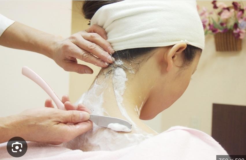 うなじ+襟足剃り ショートカットの方やアップスタイルをされる方にオススメです。潤い化粧水と肌荒れを防ぐクリームで整えます。